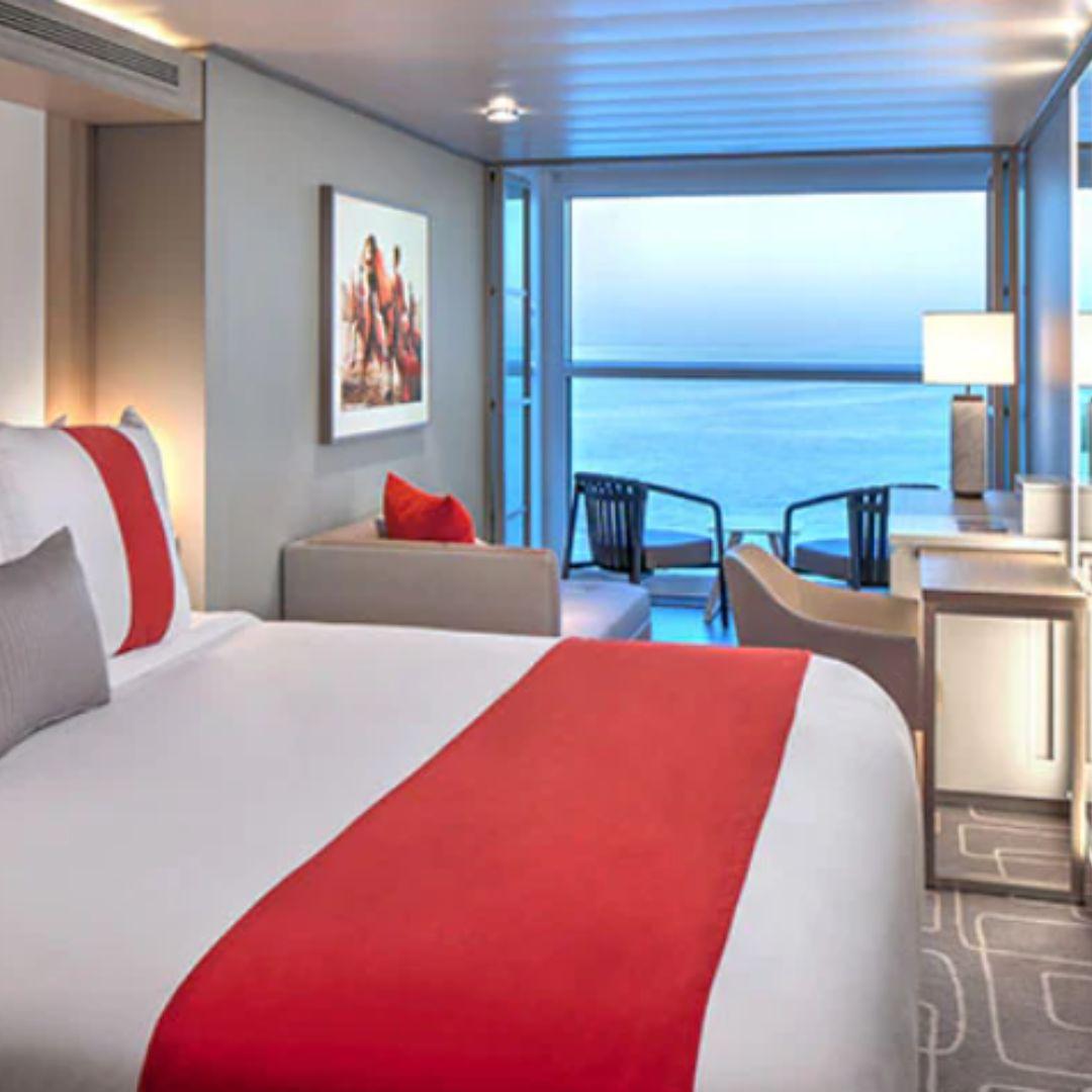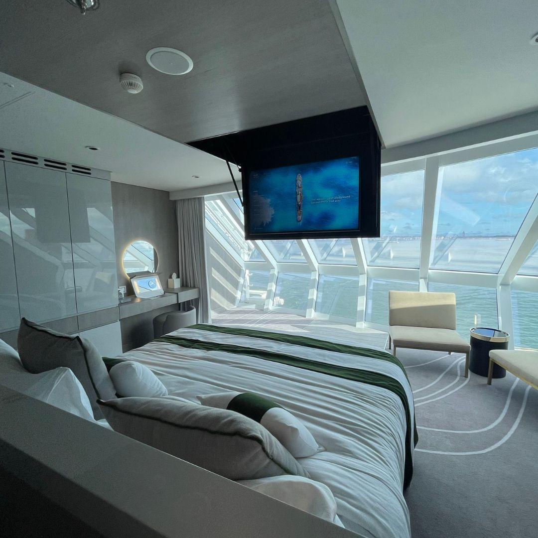The Celebrity Suite gives you the celebrity treatment. The suite has two rooms and features a large living area with floor-to-ceiling panoramic windows, a private veranda, a private bedroom with a king-size bed and a bathroom. In addition to the comfort of the room, there is a daily delivery of afternoon treats, an exclusive afternoon tea event hosted in The Retreat Lounge, complimentary 24 hour room service and more that comes along with this room.