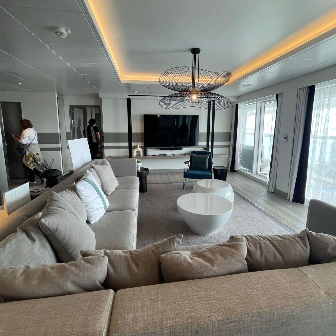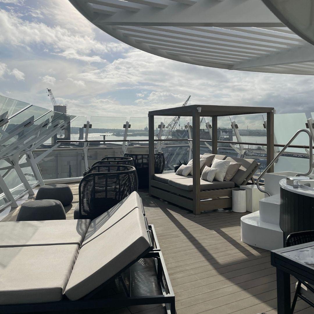 The Sky Suite is the last of the suite categories onboard the Beyond. The Suite features a king-size bed, a veranda with lounge seating, floor-to-ceiling sliding glass doors and a spacious sitting area with a sofa. If wellness is important to you, you can upgrade to an Aqua Sky Suite, that has the same amenities of the Sky Suite, but also combines the benefits of the AquaClass. The Sky Suite and Aqua Sky Suite have the same perks that the Celebrity Suite has, along with access to The Retreat Sundeck, Luminae restaurant and The Retreat Lounge, like all other suites.
