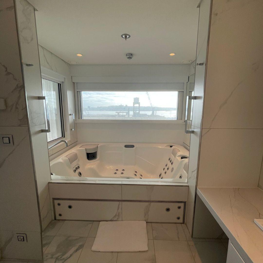 The Penthouse Suite offers another incredibly luxurious stay option for guests while on the Beyond. The suite has two bedrooms and two full, very gorgeous, bathrooms. There is a private veranda with lounge seating, a private whirlpool tub with views, and a private whirlpool tub also located in the primary bathroom. Along with this suite comes complimentary bottled water, soda and beer, unlimited lunch and dinner in all specialty restaurants, two complimentary bottles of premium spirits, VIP canapes, priority luggage delivery and an attentive butler always on hand. Life is good in the Penthouse Suite!