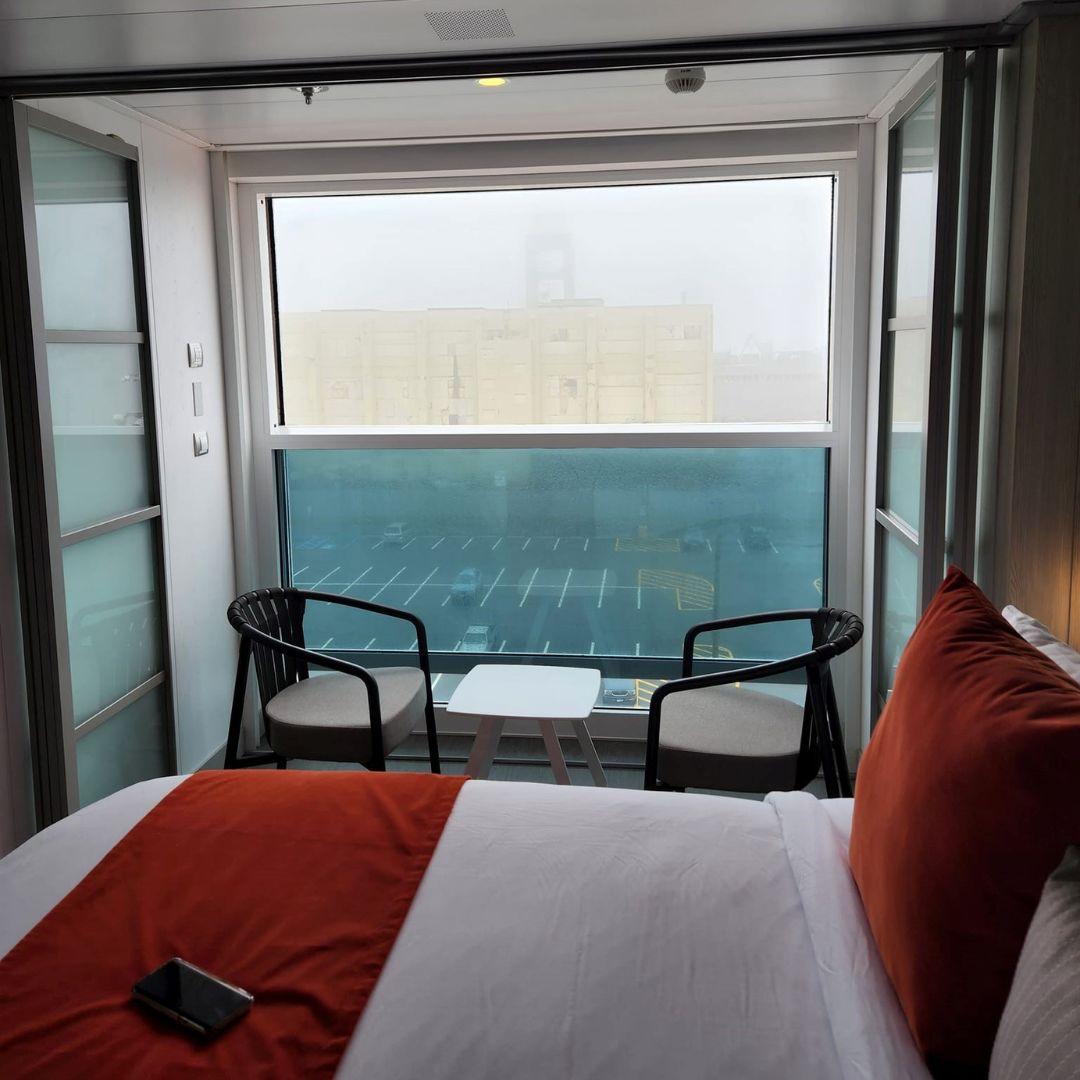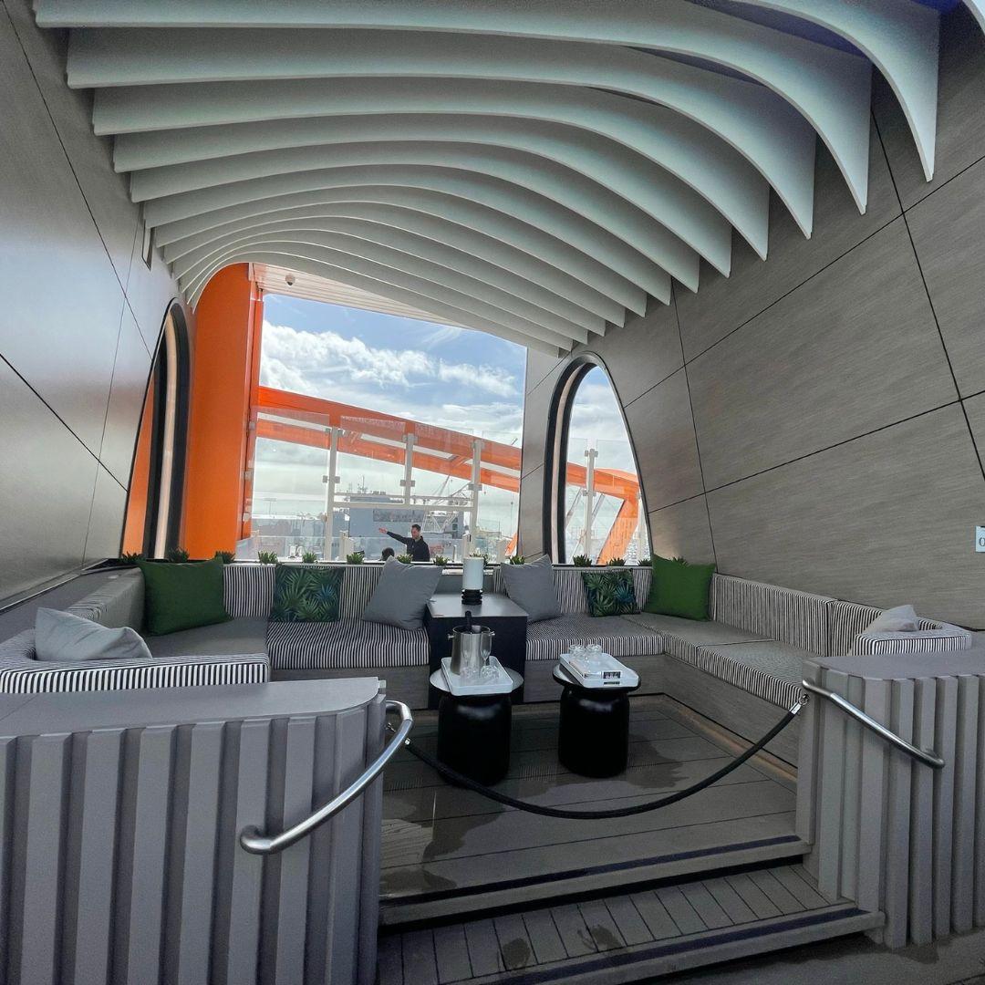 We settled into our rooms first thing, arriving at an Edge Stateroom with a gorgeous Infinite Veranda. Like on the Celebrity Edge and Apex, the Infinite Veranda is the alternative for a balcony, but gives you open air access to the sea with the touch of a button. Instead of having a sliding door to open and a separate balcony to sit on, the Infinite Veranda acts as the back wall of your room, giving you more space in your stateroom and allowing you to enjoy the veranda as a balcony when you want to. We love these staterooms- they give us the best of both worlds!