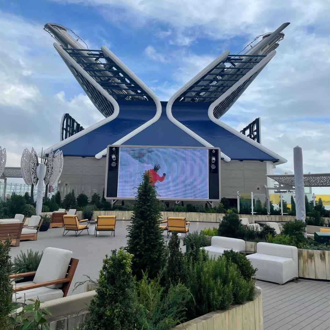 The entertainment on the ship goes above and *beyond,* pushing the limit of what entertainment on cruise ships will look like in the future. The Theatre on the Beyond is designed to have a perfect view from any seat. The technology in the Theatre is amazing- a 20-foot-tall 4K LED screen comprising 17 million pixels that curve 110 feet around the stage, with new floor projection technology that immerses guests like never before.