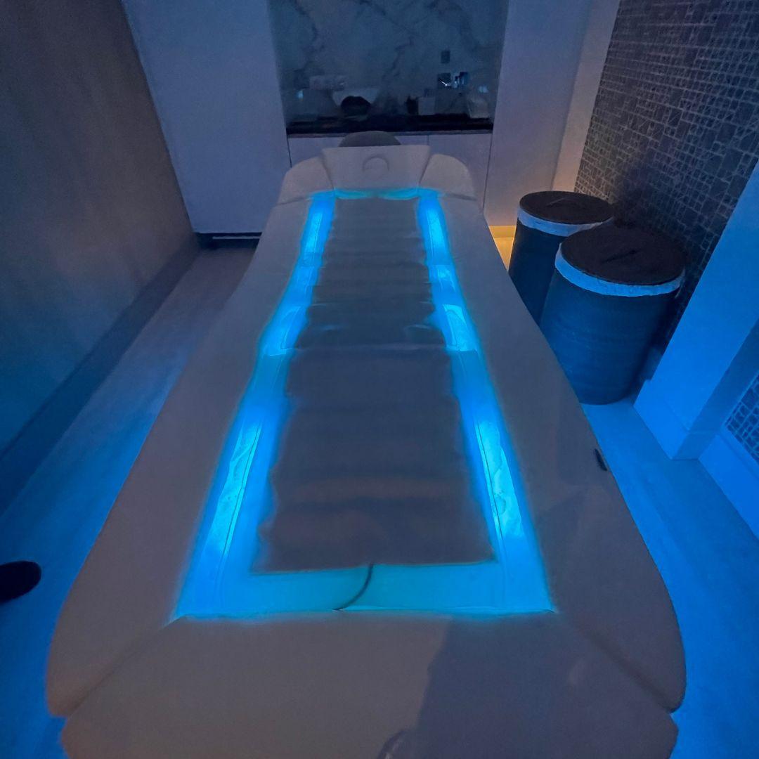 The tour started in the Thermal Suite which has heated tile loungers that offer panoramic views of the ocean, a rainfall water therapy room, a hammam, crystalarium, salt room, steam room, infrared sauna room and float room- all guaranteed to transport you to a new, thoroughly relaxed state of mind.